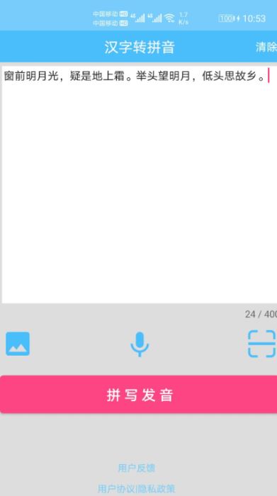 快速查询汉字、词语、句子、作文的拼音及声调.