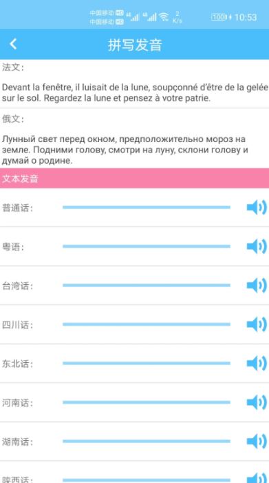 文本发音,学习全国各地的发音,普通话、粤语、台湾话、四川话、东北话、河南话、湖南话、陕西话.