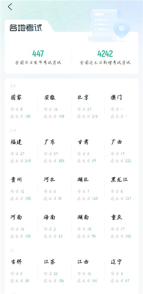 1、进入公考雷达app,点击上方右边的【各地考试】。