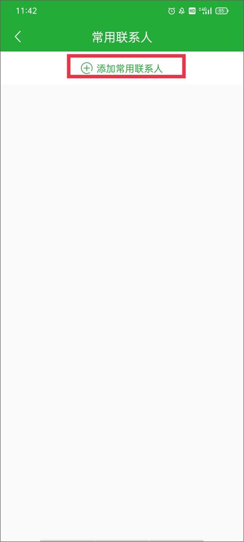 2、这个常用联系人界面会显示你之前添加的所有常用联系人信息列表,点击红色框框的“+添加常用联系人”按钮。