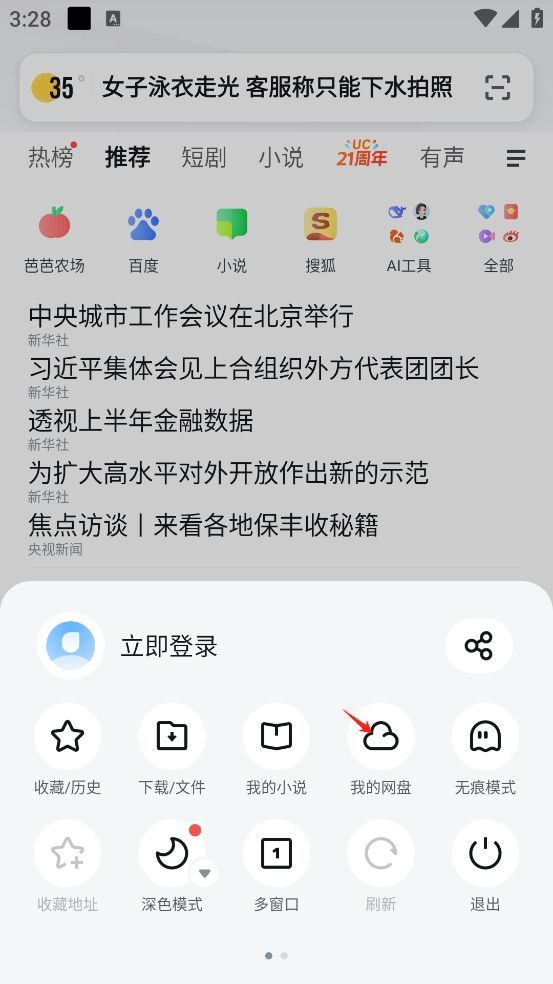 UC浏览器app怎么登录网盘?
