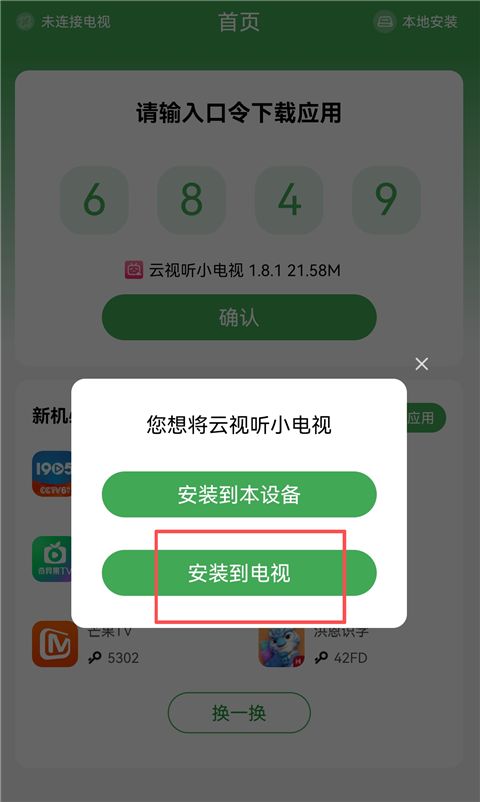 2、弹出弹窗,选择【安装到电视】。
