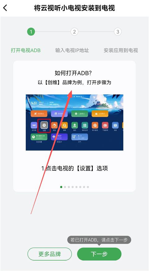 3、需要打开电视中的ADB,大家可以按照显示的教程进行操作。