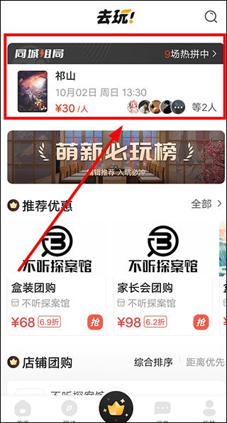 5、如果不愿意组局,也可以选择【同城组局】页面内,参与其他人发起的剧本杀组局。