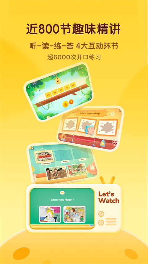 1、字母入门,词汇拓展,单词短句,视听素材,绘本读物,睡前故事,亲子情景对话一应俱全,多方位提升孩子听说能力。