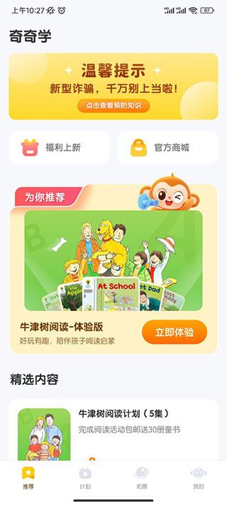 3、在计划页面中,不仅有牛津阅读,还有中文阅读,能够帮助孩子快速的从识字到阅读。