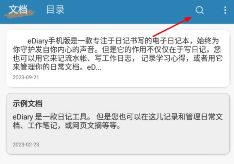 想要查找账号下的日记文件,你首先需要登录你的ediary文件,然后选择文档或者日记,然后点击上方的【搜索图标】。