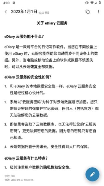 数据加密:eDiary支持本地和云端数据加密,以用户密码为种子生成密钥,确保数据安全。但需注意,若密码丢失且无备份,数据将无法恢复。