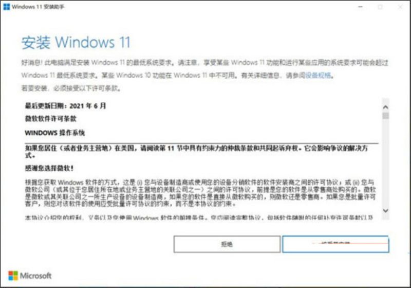 3、确认兼容性没有问题后,就可以正式的安装Windows 11 啦,点击“接受并安装”按钮。