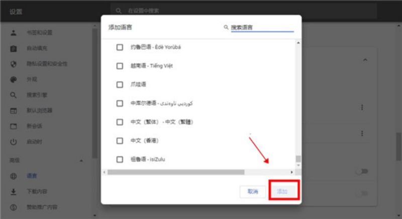 4、单击添加语言,勾选首选语言旁边的框,然后选择添加