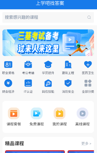 上学吧题库涵盖种类广。财会类:会计从业、会计职称、注册会计师、经济师、内审师、规划师、税 务师;职业资格类:证券、导游、保险、人力资源、司法、教师、营养师、软考、计算机、英语四六级;公务 员类:国考、省考、政法干警、村官、事业单位;建筑类:一建、二建、造价、安全工程师、电气工程师、招标师、消防工程师;学历类:高考、中考、成考、考研、硕士、自考;医学类:执业药师、执业医师、执业护士、卫生资格等