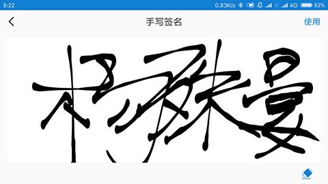 3、在手机上手写输入自己的名字,如果不满意可以点击右下角的橡皮擦撤销重写