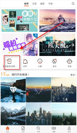 1、下载安装本站提供的安卓壁纸app,进入之后在界面底部找到视频壁纸选项,这个就是动态视频,点击进入;