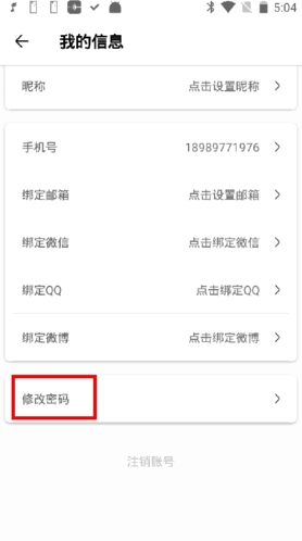 3、在进入页面,下拉就能看到“修改密码”了,点击进入。