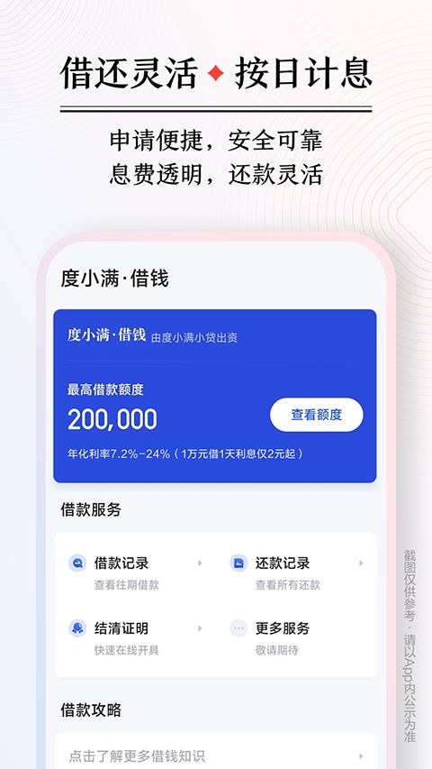 3、【偿还贷款日息低】贷款日息0.02%起,贷款1万元每天日息最低只要2元。