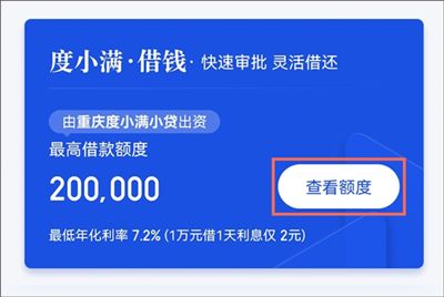 2、额度申请:通过点击[度小满 APP ]-[ 查看额度 ]