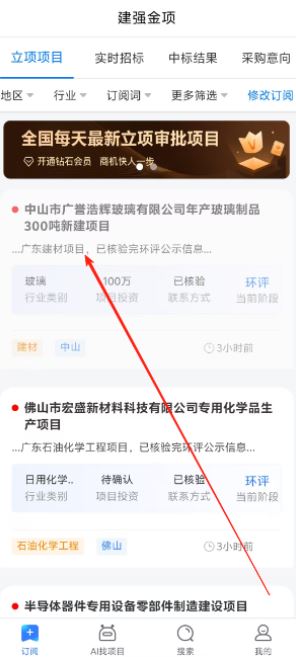 建强金项app是一款为企业提供工程项目立项播报,全国招投标信息查询的应用软件,软件能够在线AI赋能业务,用户可以在线对需要的项目信息一键查询,进而可以更好的查看实时的招标信息,让你可以轻松的掌握,筛选优质的项目来实时的投标。