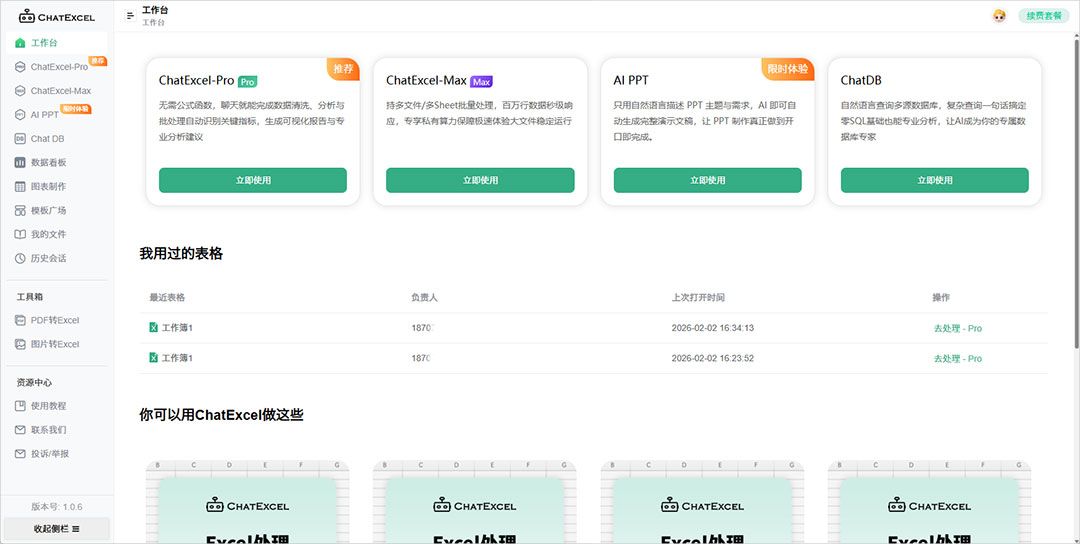 ChatExcel快速处理Excel,一句话即可完成多表合并、多sheet拆分、数据清洗、数据查找等,一句话即可完成求和、求差、求平均值、求极值等,支持同时完成多条件数据运算,将数据处理速度提升90%。