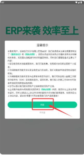 1、启动应用后阅读服务协议与隐私政策,确认无误后点击同意。