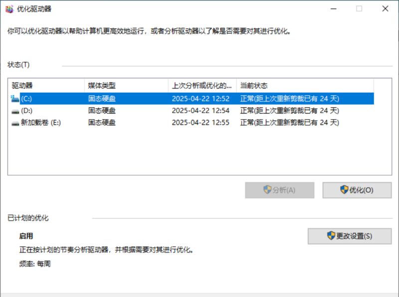 5、你可以优化驱动器以帮助计算机更高效地运行,或者分析驱动器以了解是否需要对其进行优化。