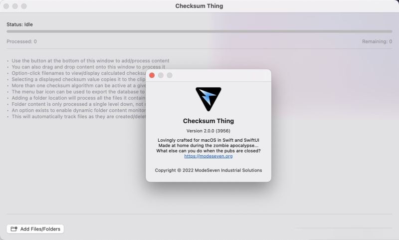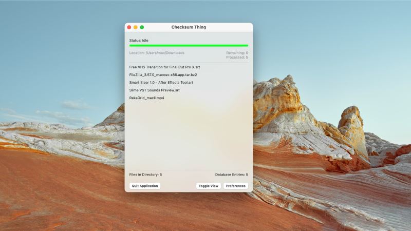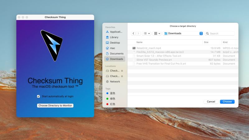 Checksum Thing直装版是一个菜单栏应用程序,它监视指定目录,例如您的下载文件夹,自动记录和存储到达文件的校验和/摘要值。Checksum Thing一个简单的上下文单击显示校验和值,另一个单击方便地将该值复制到剪贴板。使用的校验和/摘要算法是可选择的,支持 MD5、SHA1 和各种其他算法。在支持的 macOS 平台上使用硬件加速加密功能。可选择生成声音通知,让您随时了解情况。