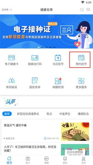 健康甘肃app怎么预约挂号