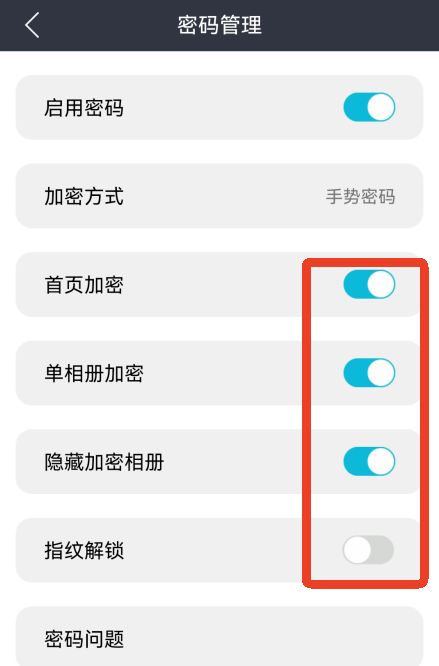 5、最基础的密码就设置完毕了,你也可以给首页、单相册加密。