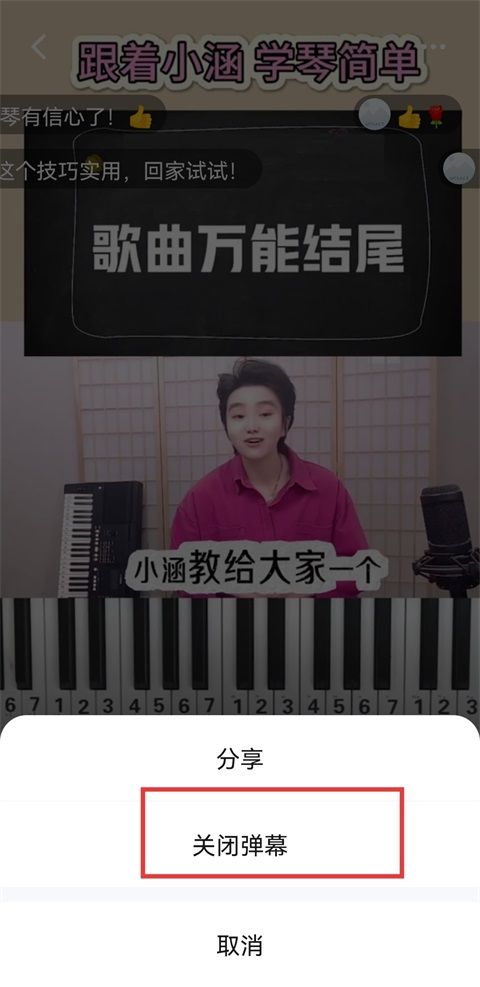 2、选择【关闭弹幕】选项即可。
