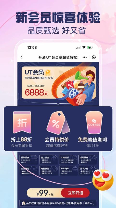 海量会员特权一次回本,多买多省。KANISA咖啡免费喝,开卡大礼包,购物折扣享不停,还有让你意想不到超低会员价商品。给您的吃喝玩乐购带来全新的折扣新体验。
