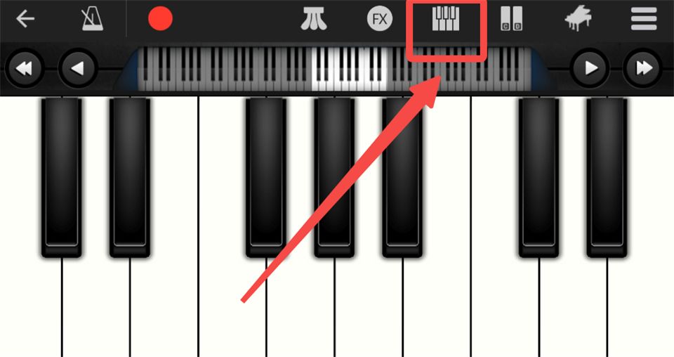 1、打开完美钢琴app,进入弹奏页面后,点击右上方的第三个图标,就可以设置在按键上显示数字了。