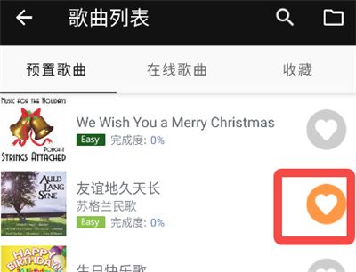 1、进入歌曲列表,点击歌曲旁边你的爱心图标即可收藏。