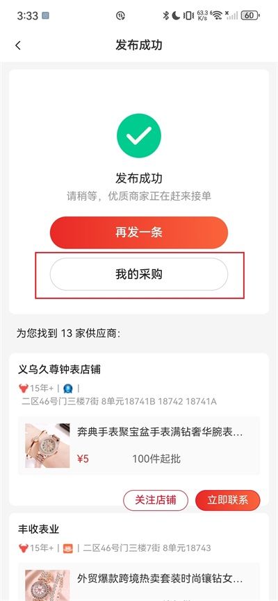 3、发布成功后,可点击"我的采购"查看已发布的采购需求,同时平台会匹配对应的供应商供对接。