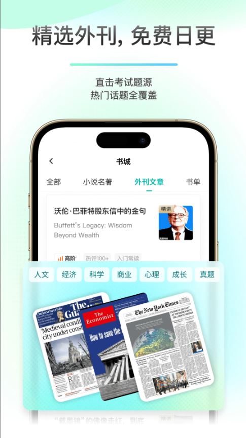 软件根据用户的英语水平和学习需求,为用户推荐适合的阅读材料,帮助用户更好地提高英语阅读能力。