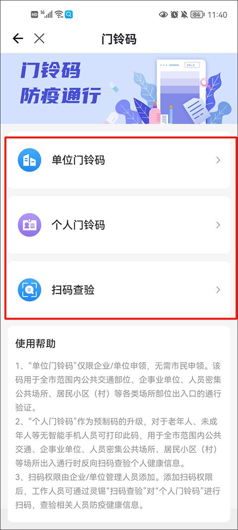 2、门铃码包括了单位、个人、扫码三种方式,用户可以在【使用帮助】中查看这三种的各个用法。