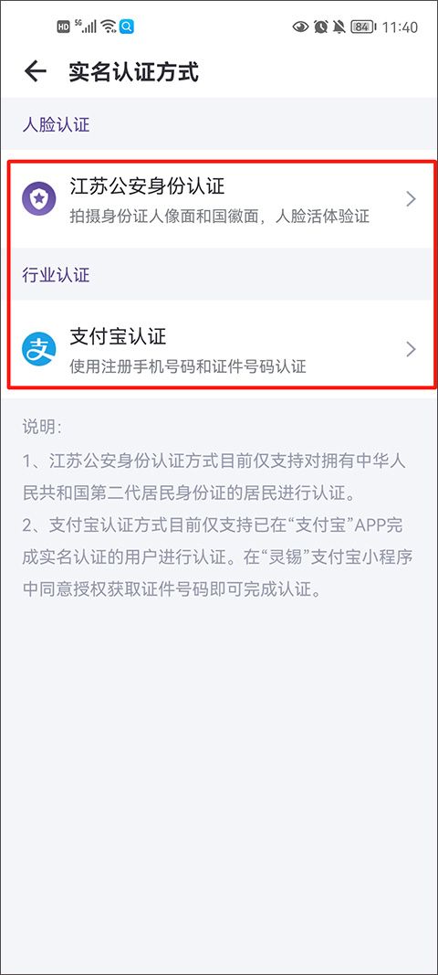 3、实名认证方式可以通过江苏公安身份去认证,也可以通过支付宝认证,提前是支付宝是有认证过的。