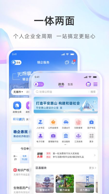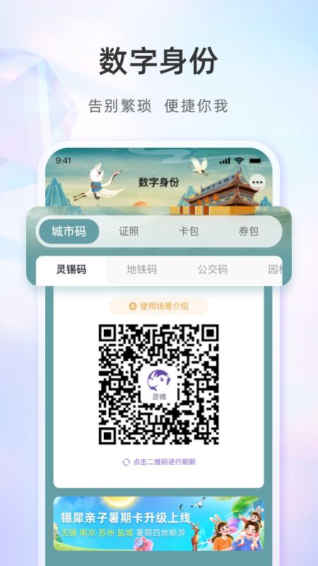 以政务+公共服务为主,以提升民众体验感与获得感为目标,整合城市服务资源,打造数据智能闭环,以运营服务体现数据价值,构建“以人民为中心″的新型城市服务平台。涵盖城市智能、数字孪生、全域预约、政务办事、城事资讯、交通出行、便民缴费、城事生活、学在无锡9大特色场景。使用唯一的二维码实现“人、证、码”合一,在办事、生活各类应用场景使用,不再需要下载多个APP,并逐步取代实体卡和纸质证明。“灵锡”首期提供了包括政务办事、交通出行、医疗就医、旅游入园、借书参观等170多项服务。