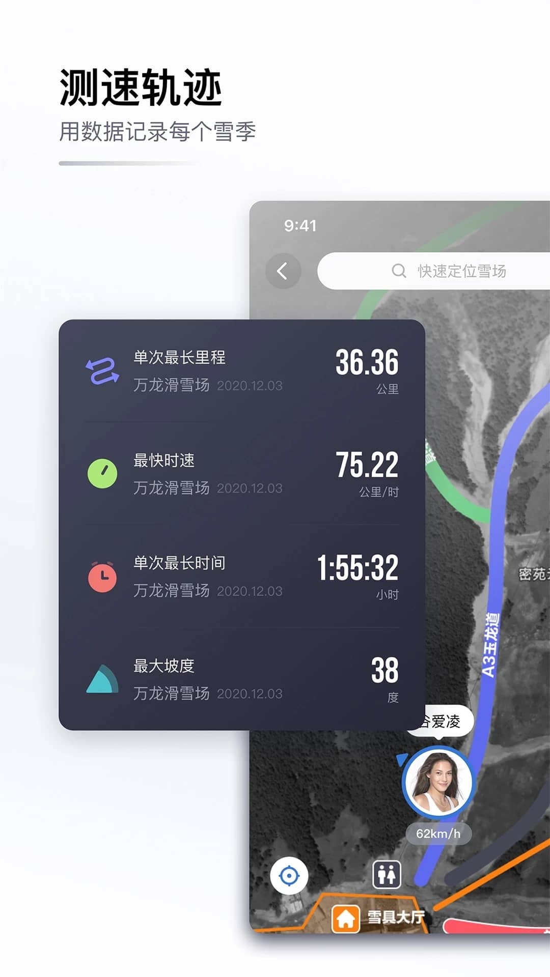 1、测速轨迹,用数据记录每个雪季