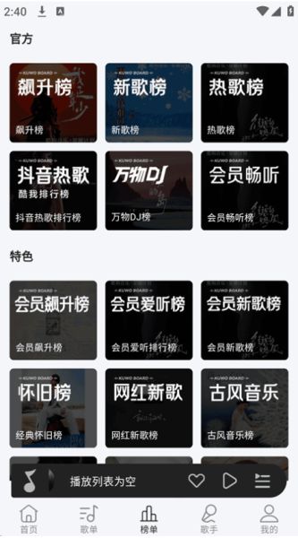 用户可手动创建自定义歌单,支持歌单重命名、排序、分享,打造专属音乐集合。