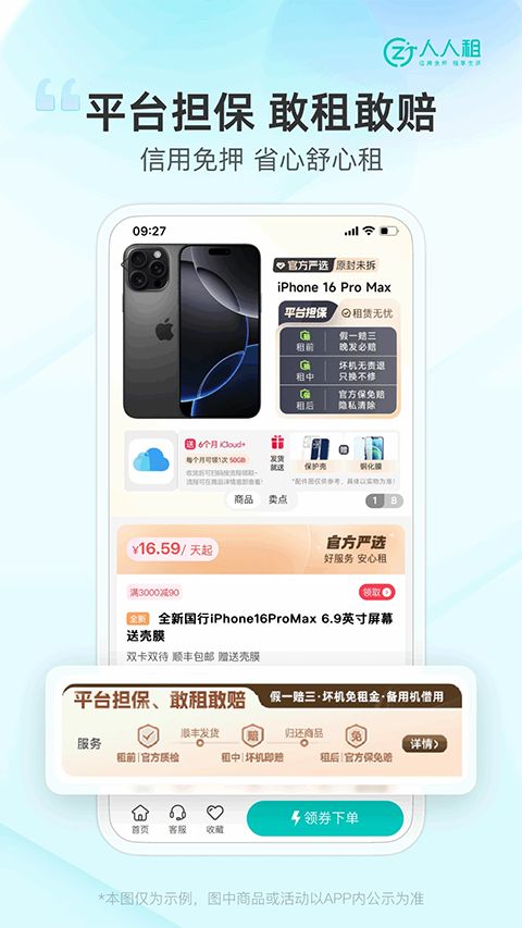 人人租提供官方查验、坏机免费换、官方保免赔等服务,全程保障您的租用体验。
