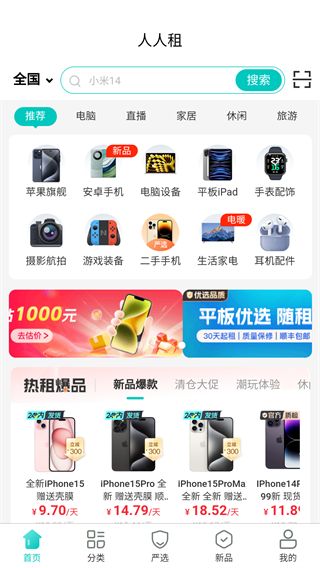 租手机、租电脑、租相机、租pocket3、租平板、租耳机、租智能手表、租AI眼镜、租机器人、租机器狗、租游戏机、租无人机、租vr设备、租美容个护、租大健康、租家居家电、租电动车、租乐器等租赁需求人人租均可满足,提供全品类租赁服务。