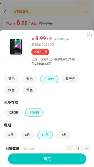 可在商品详情点「免押租」按钮,完成套餐选择后即可查看相应的日租金,一般而言租期越长,日租金越优惠:对于续租订单可在「我的-租货订单-待归还」订单处点击「续租」按钮即可香看续租日租金。