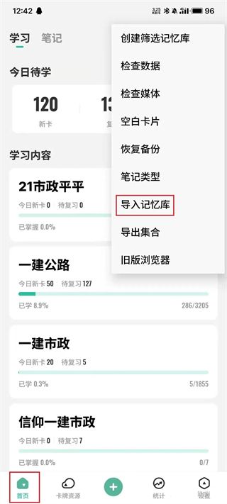 点击首页-右上角三个点-导入记忆库-选择团长分享给你的卡牌