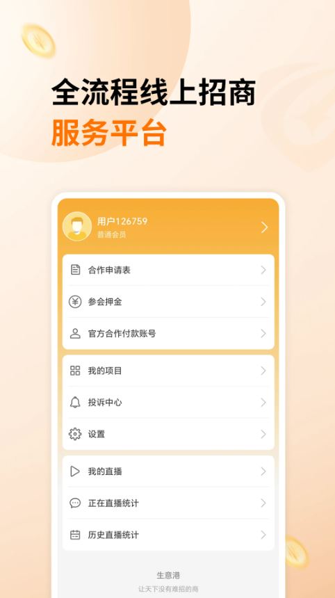 生意港app是一款企业数字化营销工具软件,为企业提供项目展示、项目直播、线上招商会等全生命周期的在线招商服务,结合后台管理系统中客户管理功能、数据管控功能,能够帮助企业完成客户跟进和客户成交转化等工作,助力企业市场渠道建设和营销数字化转型。有需要的朋友可在本站下载使用!