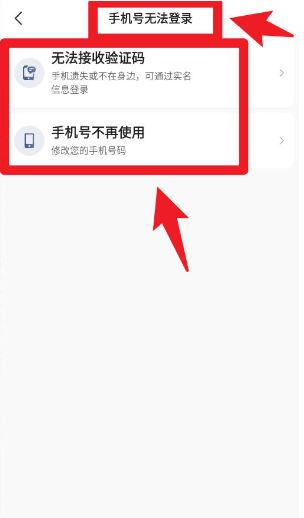 2、若出现手机号无法登录的情况,可以通过无法接收验证码或手机号不再使用选项,使用实名认证来完成身份确认与修改。