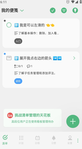 2、在这里可以看到自己的计划清单,系统会给出一些使用教程,可以跟随教程先熟悉操作;