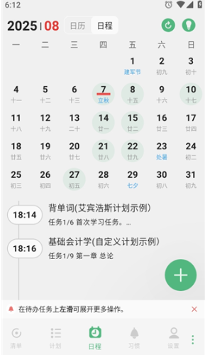 4、日程与日历相结合,可以直观的看到每天的计划,可以添加某一天的计划。