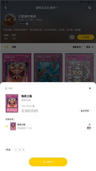 4、注册完成后点击自己想要的卡牌进行查看并加入购物车即可购买。