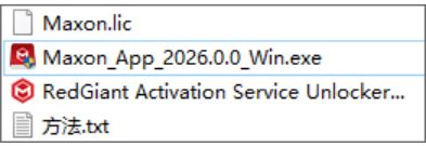 1、下载解压,得到maxon全家桶下载器,以及补丁文件;