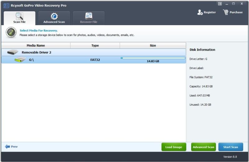 第二步:运行Rcysoft GoPro视频恢复专业版
