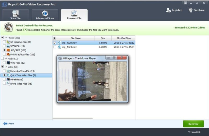 由于人为错误,电源故障,传输故障,意外删除,格式化或损坏而恢复GoPro MP4视频。
